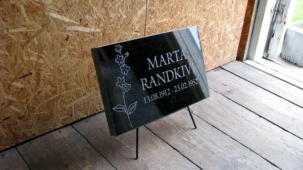 Hinna sees on kavand ning abrasiivjoaga graveeritud ees- ja perekonnanimi, daatumid ja vektorgraafikas kaunistus.